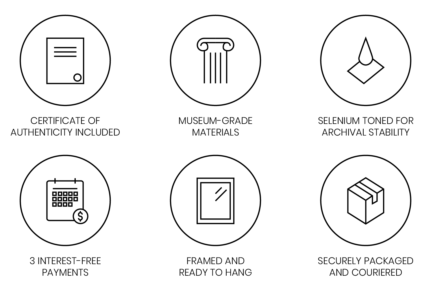 Each piece combines the precision of traditional photographic printing techniques with the unpredictability of fire, creating a minimalist yet organic aesthetic that brings presence and refinement to any space.
